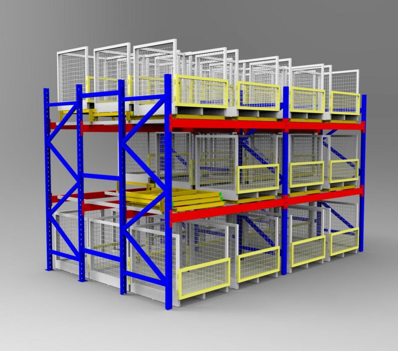特別注意:此類系統(tǒng)對貨架的制造精度要求較高,托盤小車與導(dǎo)軌間的配合尤為重要,如制造、安裝精度不高,極易導(dǎo)致貨架系統(tǒng)的運行不暢。