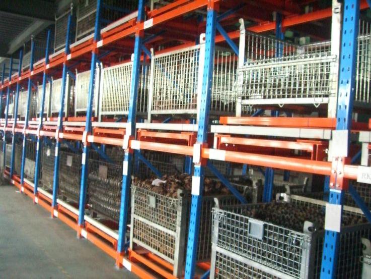 從前推入的貨架:采用軌道和托盤小車相結(jié)合的原理,軌道呈一定的坡度(3°左右),利用貨物的自重,貨物被規(guī)定于單端存儲,貨物先進后出,適用于大批量少品種的貨物存儲,空間利用率很高,存取也較靈活方便。貨架總深度不宜過深,一般在6個托盤深度以內(nèi),否則由于托盤小車相互嵌入的緣故而會使空間犧牲較大。單托貨物重量一般在1500kg以內(nèi),貨架高度一般在6m以下。